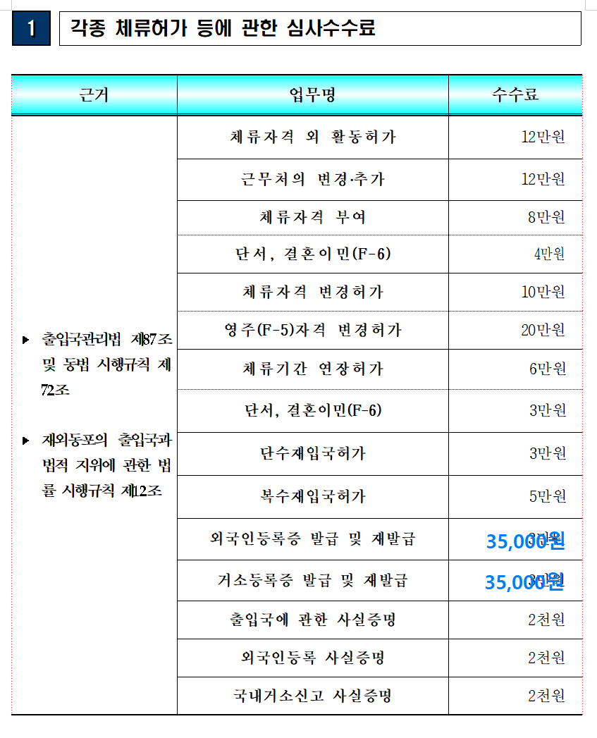서류 : 신청서, 여권원본, 외국인등록증, 수수료