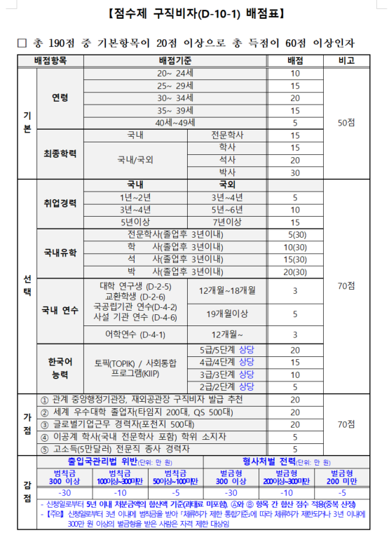 오늘은 일반 구직 비자(D-10-1) 자격 중